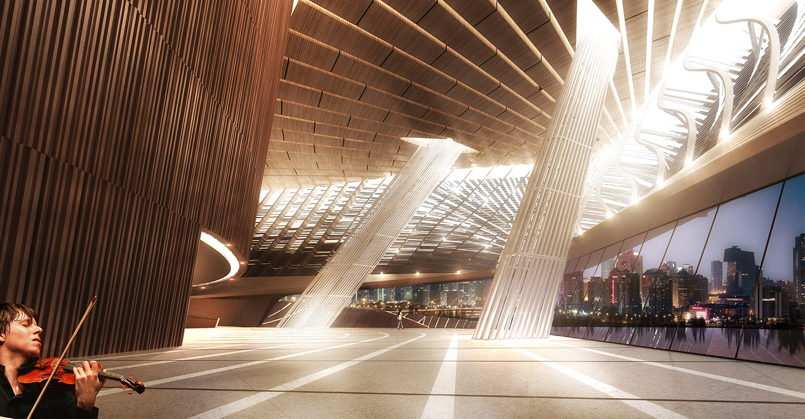 中國傳統(tǒng)文化“天人合一”的自然觀與社會觀,以“山、水”的自然美來再現“智者樂山、仁者樂水”的儒家美學觀。建筑設計中將中軸景觀河畔景觀設計與建筑設計相融合,以此與整個大學城的城市景觀相融合,達到建筑與景觀一體化設計的結果,提高了整個園區(qū)的品質與園區(qū)文化。