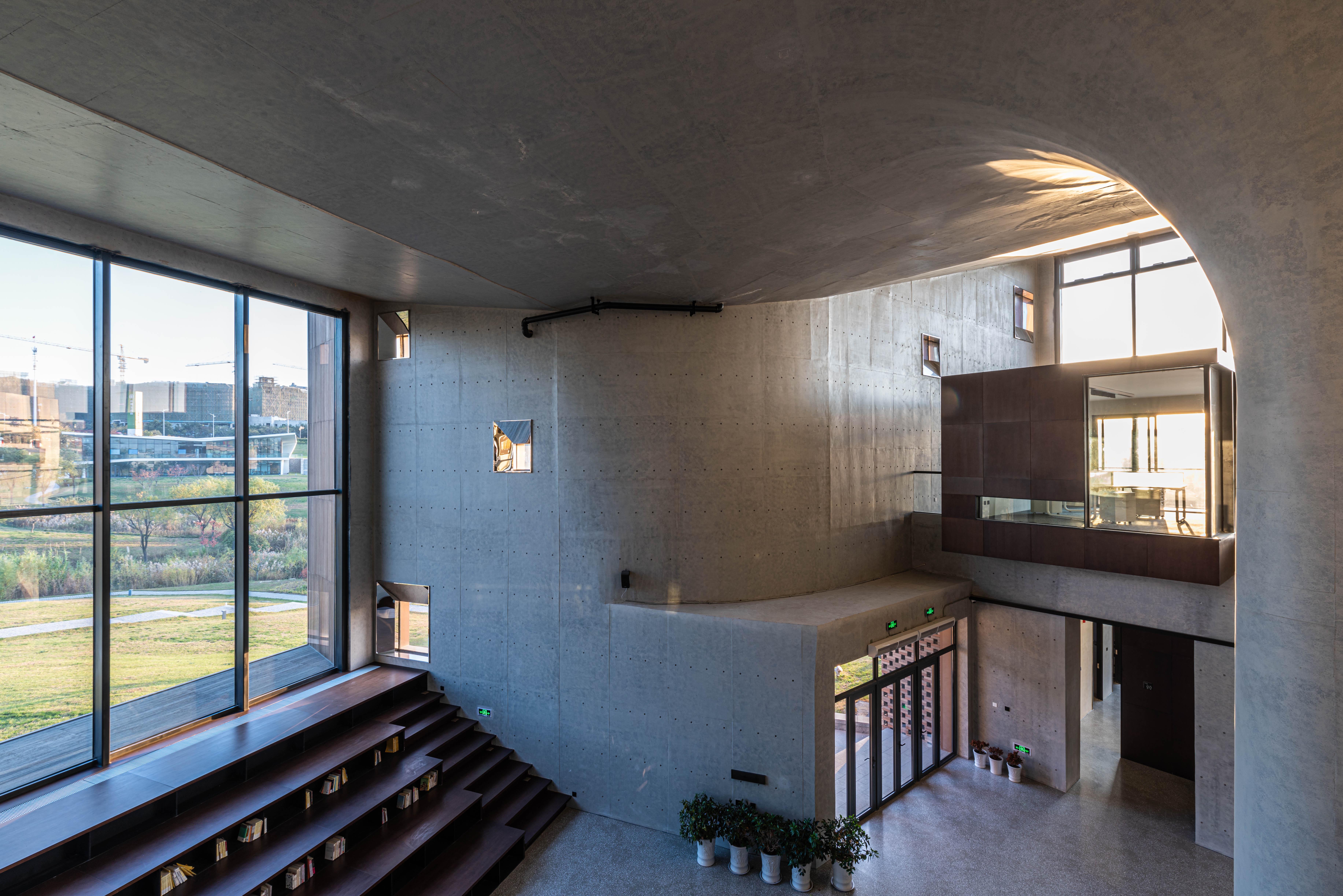 接待大廳、休息區(qū)、展覽區(qū)、室內(nèi)小劇場、辦公區(qū)、會議區(qū)、室外小劇場和自然環(huán)境相互交融并置,相互之間流線獨(dú)立又彼此滲透。