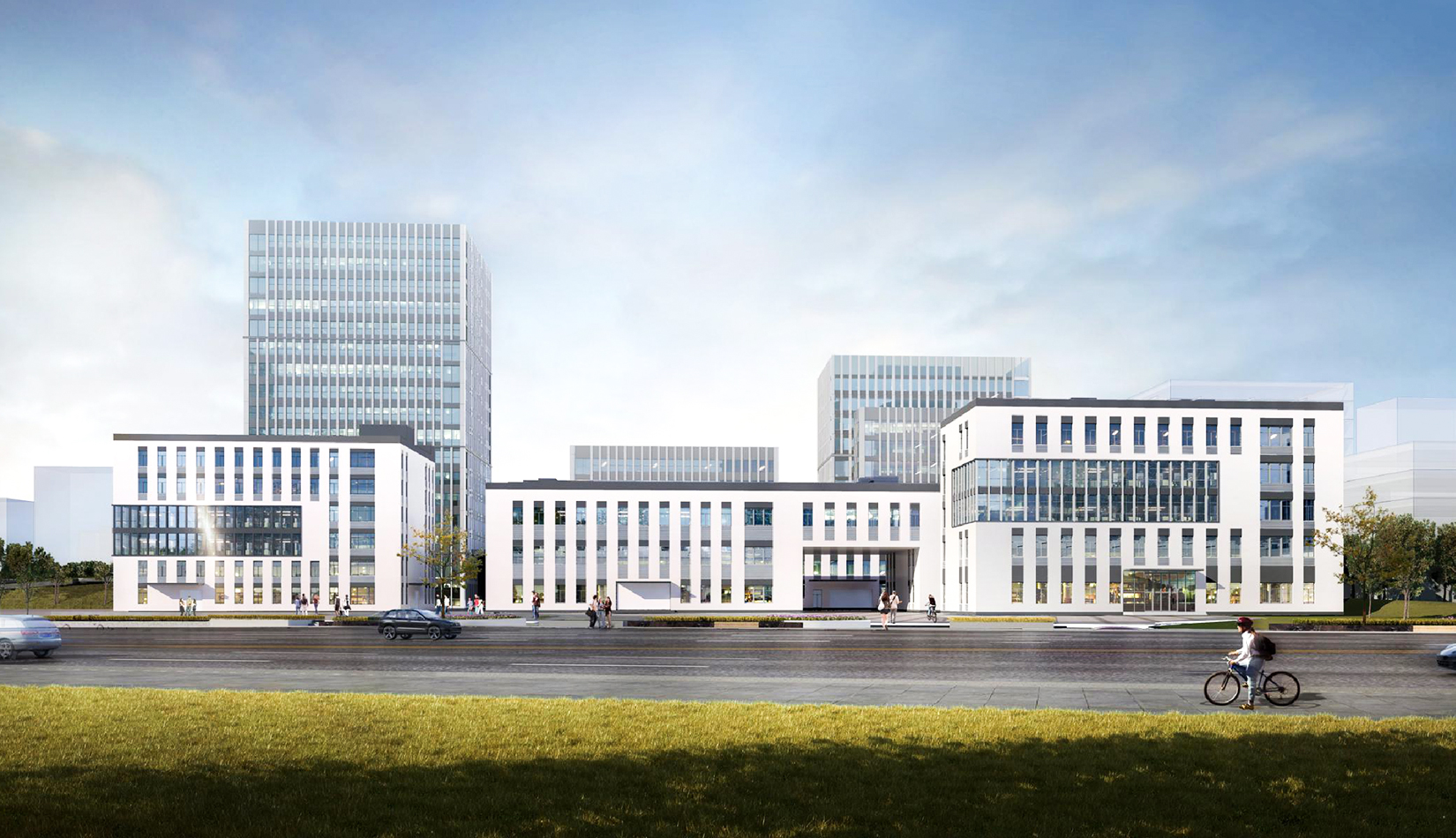 多組團——以園區(qū)道路劃分為多個工業(yè)組團空間,分為多層生產制造組團、高層生產研發(fā)組團以及園區(qū)配套辦公組團。