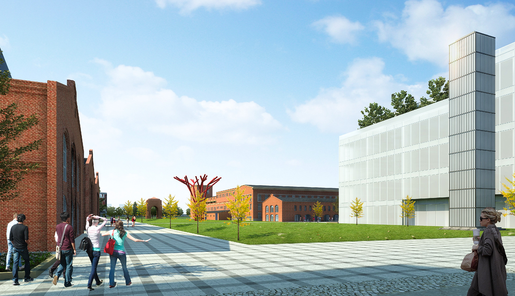 利用原有廠房中具有代表性的部分作為重要的展示節(jié)點,形成具有標(biāo)志性的工業(yè)遺跡風(fēng)貌,與新建建筑的現(xiàn)代感相交融,打造具有時空連續(xù)性與對立性的感官體驗。