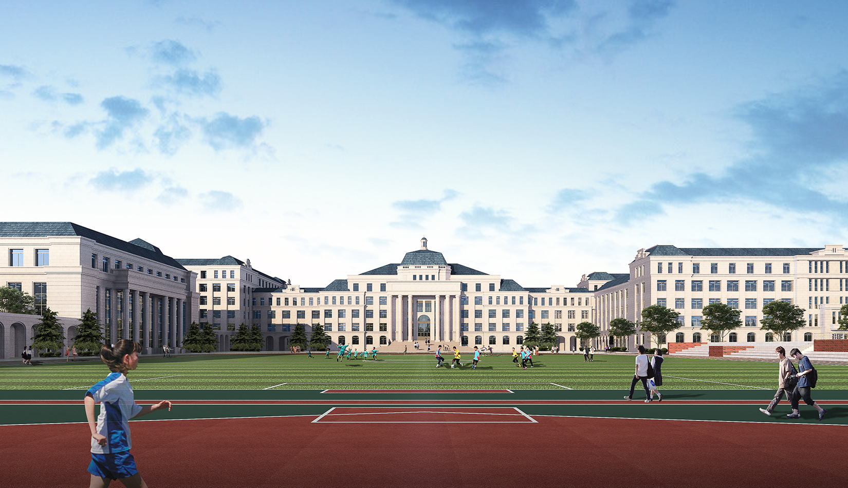 根據(jù)用地功能分區(qū),形成校區(qū)“軸線”關(guān)系,營(yíng)造“書(shū)院”建筑圍合形態(tài)。方案設(shè)計(jì)主入口軸線院落組團(tuán)、教學(xué)區(qū)院落組團(tuán)、生活區(qū)院落組團(tuán)、次軸線院落組團(tuán),形成校園主出入口軸線關(guān)系,體育館對(duì)外次出入口軸線關(guān)系,以此傳承“國(guó)子監(jiān)”空間布局文化。
