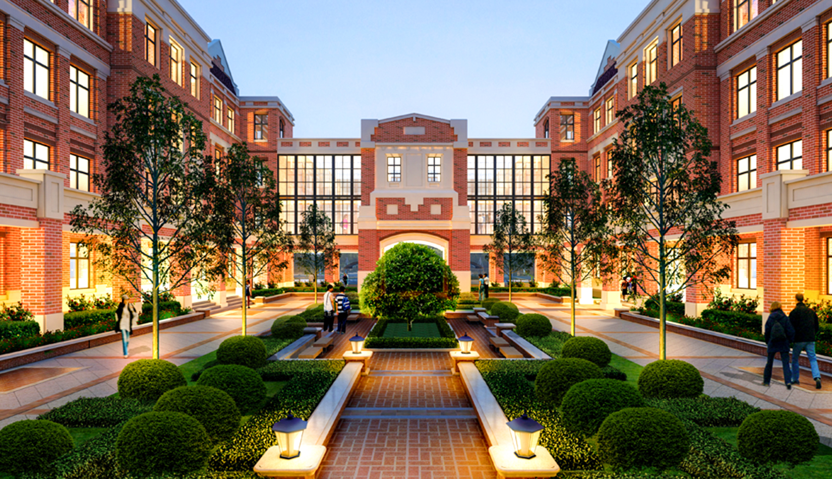 學(xué)院派的院落空間布局: 規(guī)整的建筑軸線布局,古典的建筑界面,方整的院落交流空間,結(jié)合廣場(chǎng)、綠地,營(yíng)造百年學(xué)府的低調(diào)。