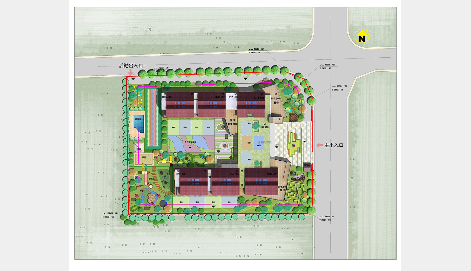 建筑造型來源于兒童最初對房子的印象并進(jìn)行延伸,加上積木搭接形態(tài),形成C字形圍合的主體建筑,就像父母溫暖的懷抱;建筑造型跟兒童產(chǎn)生很好的親切感,讓兒童將上幼兒園成為快樂的事情。同時(shí)形態(tài)結(jié)合地緣文化特色,采用雙折坡屋頂,寓意展翅翱翔的海鷗。