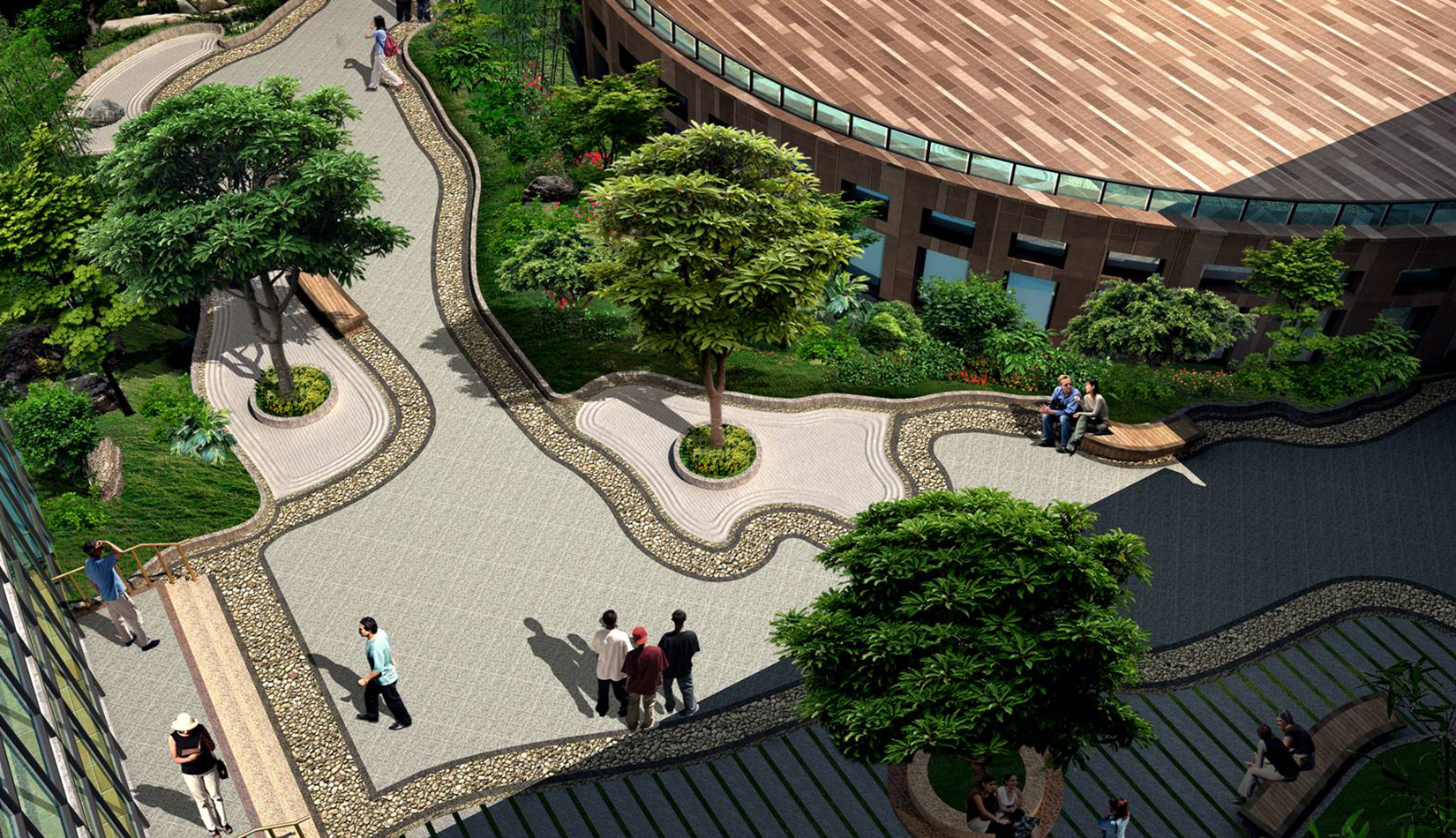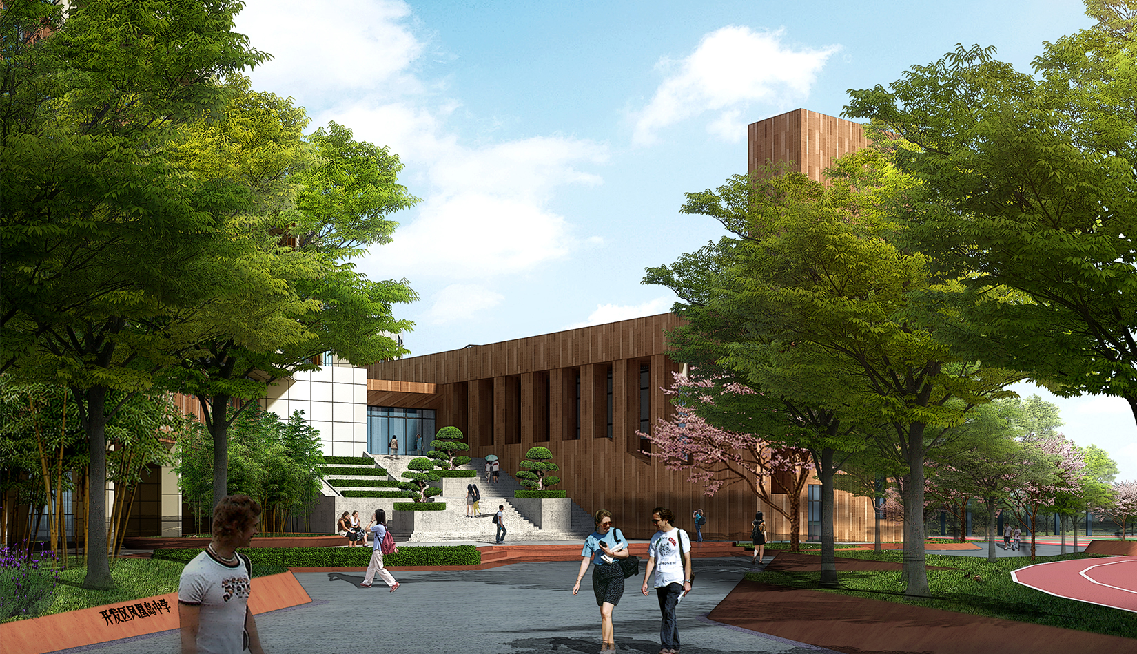 以鳳凰為設(shè)計(jì)思想來(lái)源,建筑為骨,環(huán)境為翎,合理組織前廣場(chǎng)的空間結(jié)構(gòu)。