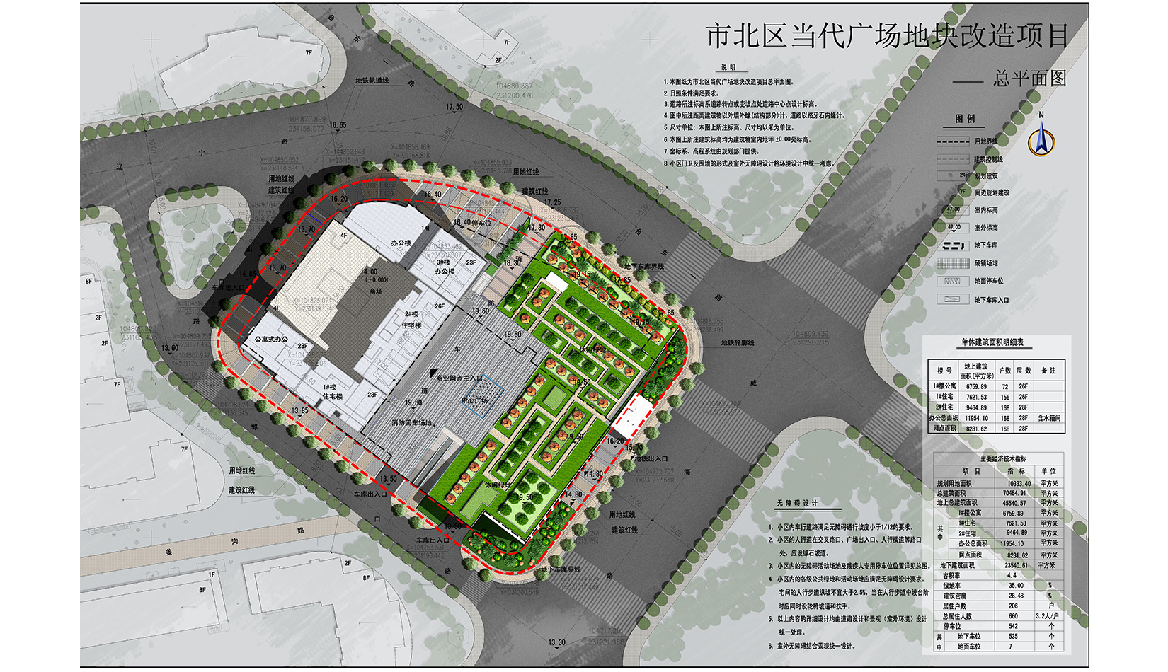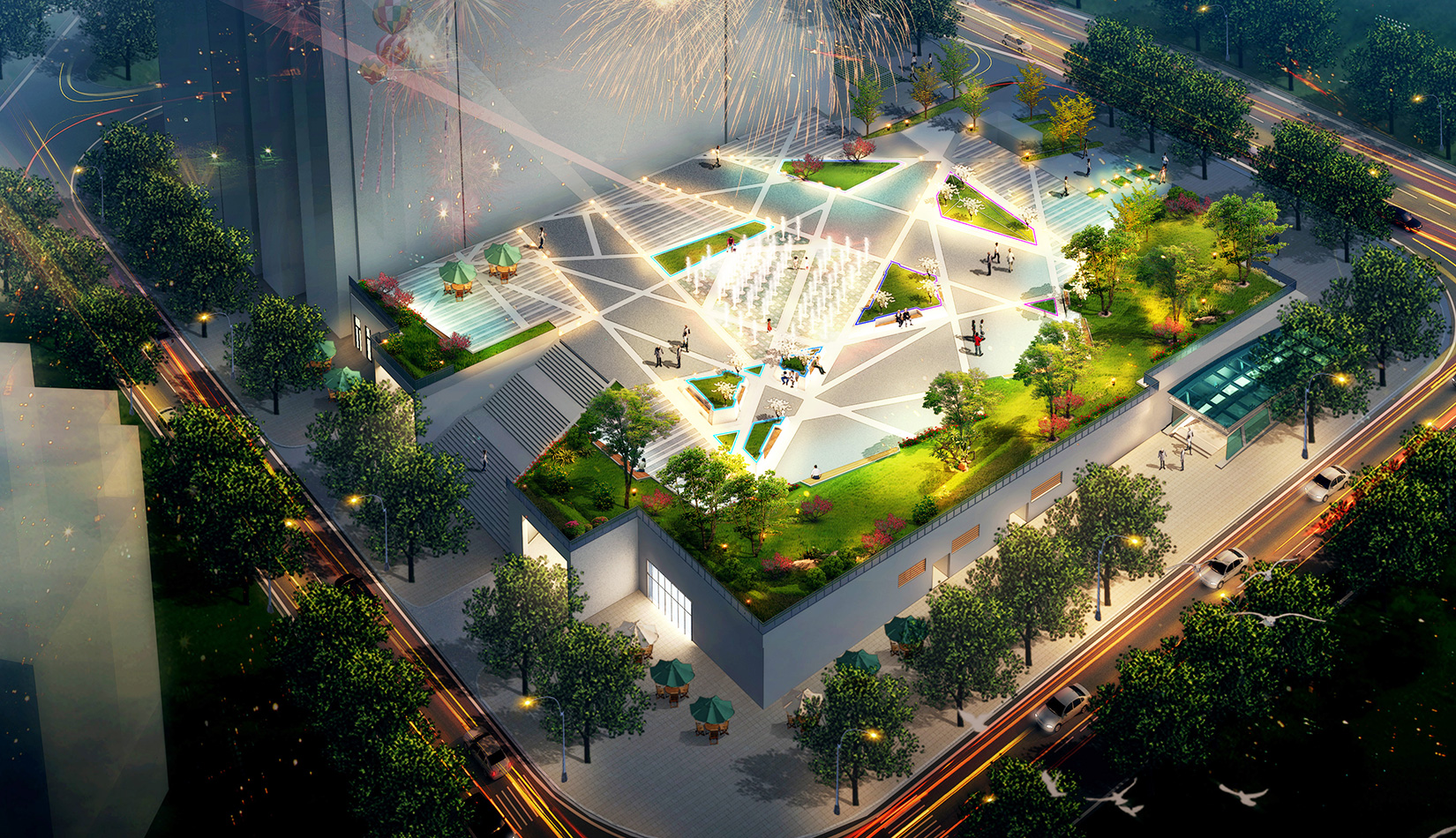 結合臺東商圈地理位置,在建筑南側設臨街廣場,考慮視線的通透與遮擋,與帶狀綠地自然的溝通,達到廣場、建筑、景觀的完美結合。
