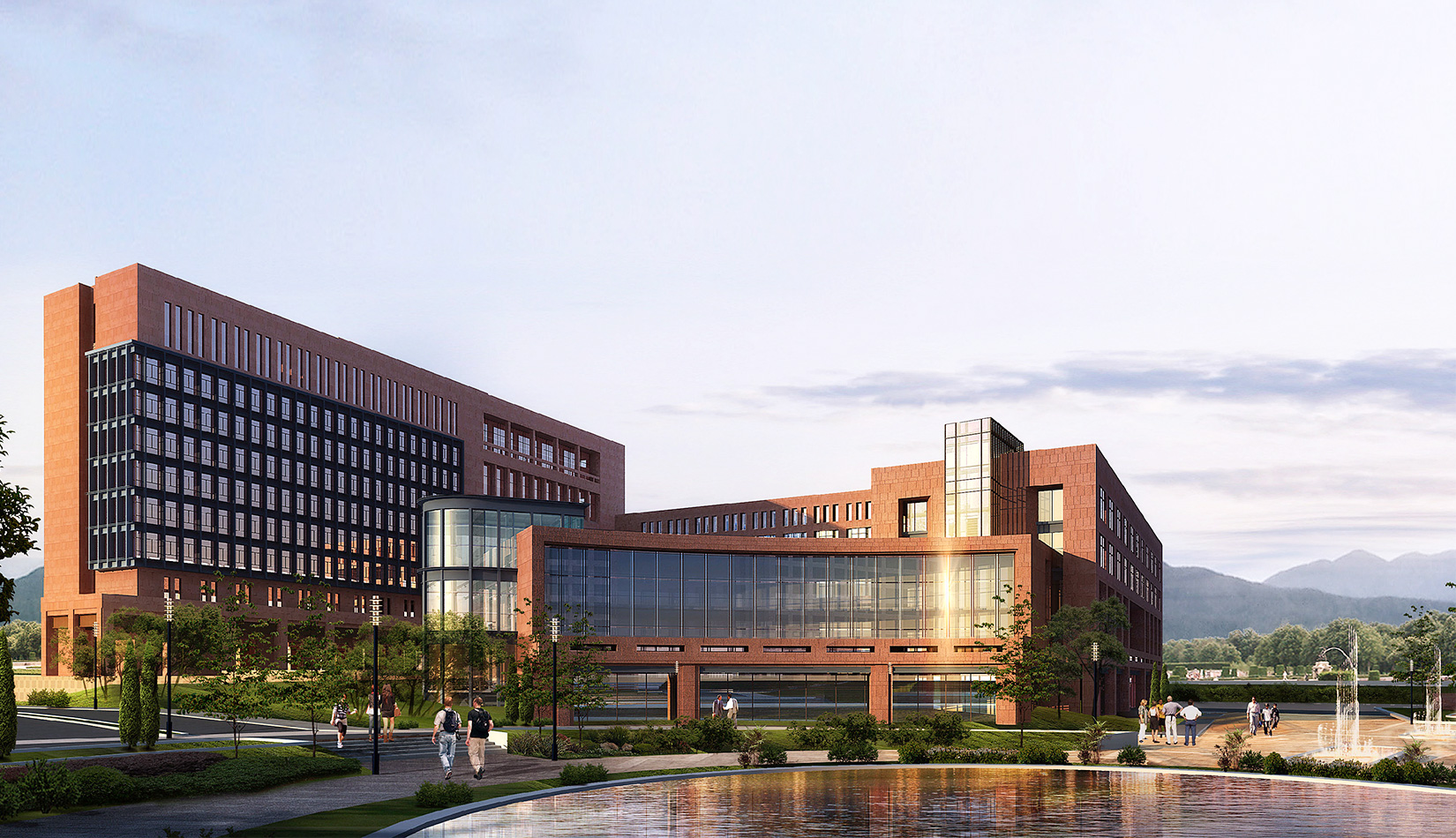 總體的規(guī)劃布局圍繞中心景觀廣場展開設計。首先從山區(qū)建筑布局師法自然,藏風聚氣的傳統(tǒng)觀念出發(fā),結合現(xiàn)代科學嚴謹求真務實的態(tài)度,設計以東側入口廣場導入的中心景觀空間圍合展開規(guī)劃布局,總體上根據(jù)土地的使用性質分為四個區(qū),分別是正對主入口北側的生活區(qū),南側的孵化中心區(qū),正對主入口廣場的科研辦公區(qū),以及整個用地最南端的產業(yè)開發(fā)區(qū),各個區(qū)既相互獨立同時又緊密聯(lián)系,功能上即考慮主導風向又方便使用。