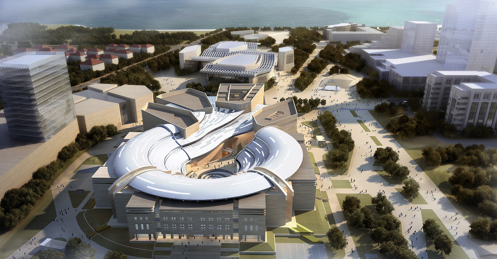 該項(xiàng)目由我院聯(lián)合中國(guó)建筑設(shè)計(jì)研究院崔愷院士團(tuán)隊(duì)共同打造。設(shè)計(jì)方案以“嶗山石花、海涌浪激”的意向?yàn)榛{(diào),形成“浪涌石開(kāi)、時(shí)空留痕”的文化景象。